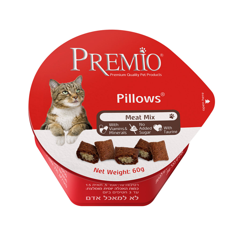 פרמיו כריות מיקס, חטיף פריך מבחוץ וקרמי מבפנים לחתולים.