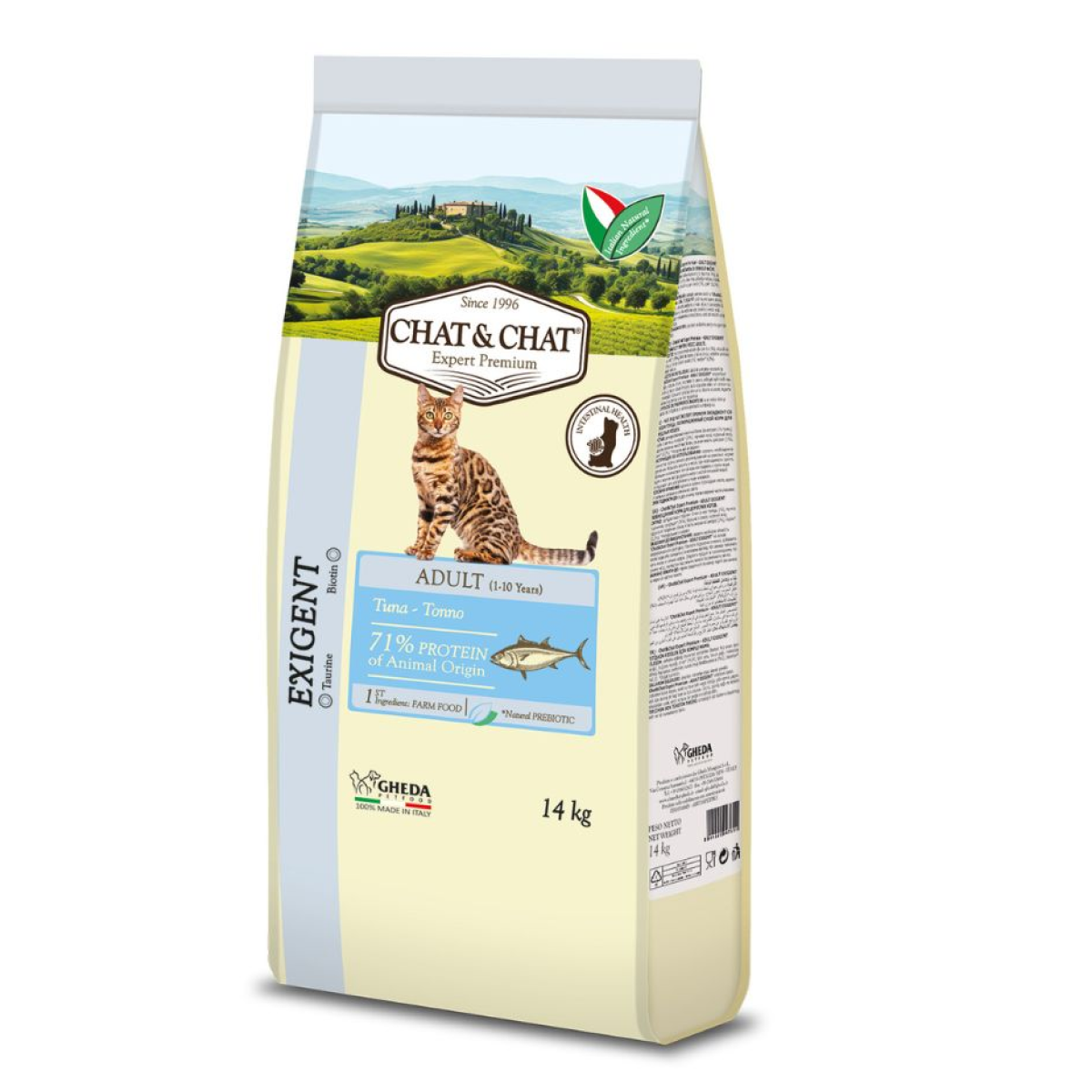 מרכיבים: דגנים (דגנים מלאים 24%), בשר ותוצרי לוואי מן החי, תוצרי לוואי מן הצומח (עיסת סלק מיובשת 1%), שומן, דגים ותוצרי לוואי (טונה 1%), ירקות (אפונה 0.2%).