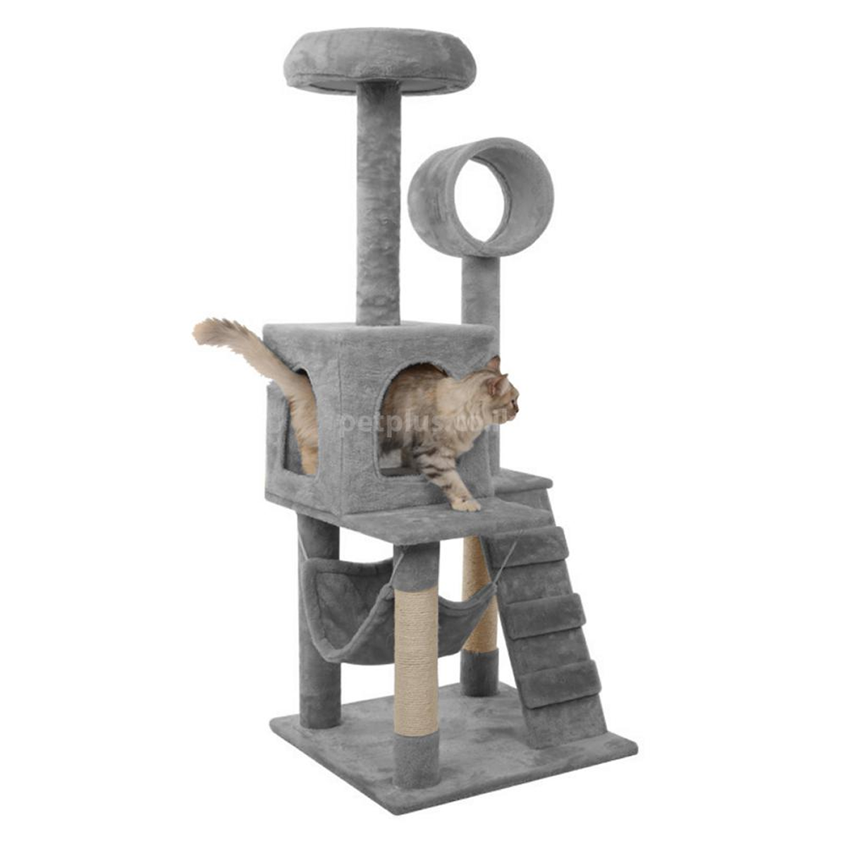 מתקן זה משלב מגוון אלמנטים המאפשרים לחתול לטפס, לשחק, לנוח ואפילו לשייף את ציפורניו.