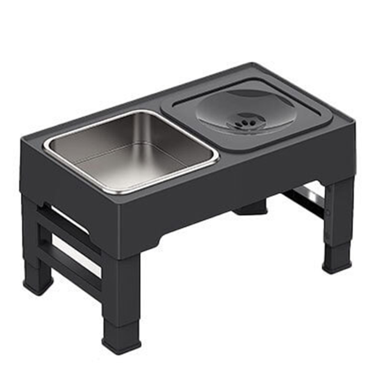 מתקן מתכוונן משולב קערת מים למניעת התזה וקערת אוכל מנירוסטה